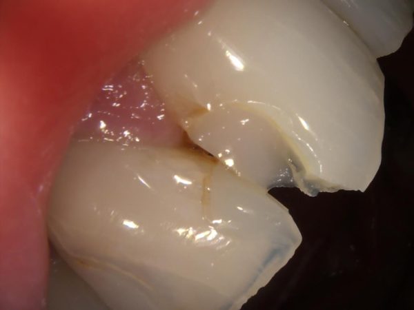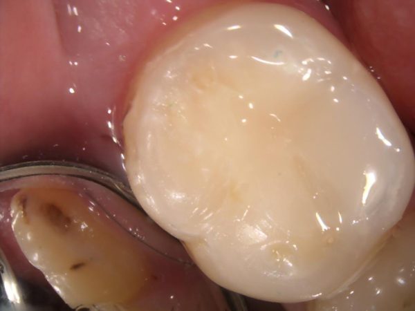 Old cracked filling replaced with a highly aesthetic new filling by Dr Amir Sharifi.