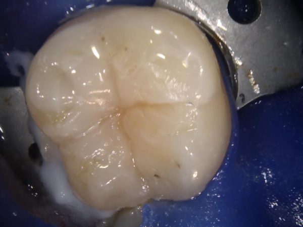 A highly decayed and infected tooth restored resulting in a perfect aesthetic filling by Dr Amir Sharifi.